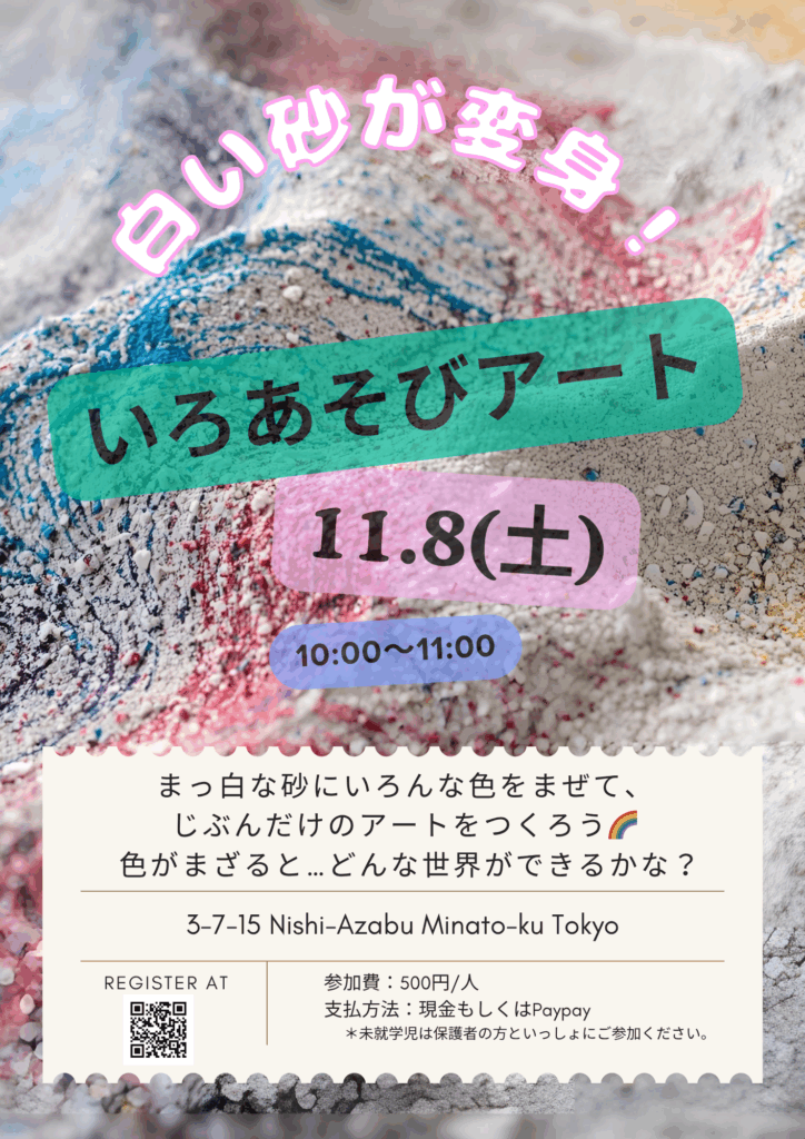 まっ白な砂に色をつけて、世界にひとつだけのアートをつくります。