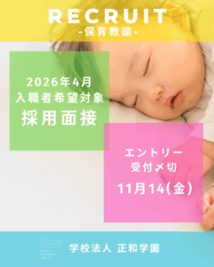 11月29日(土)に予定している、学校法人正和学園【2026年4月入職希望者対象・採用面接】への参加をご希望の方は、11月14日(金)までにエントリーをお願いいたします。 ご希望の方は、お早めにお申し込みください。ご不明 […]